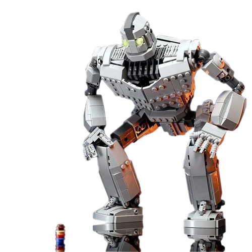 Após a montagem, a figura do Gigante de Ferro mede aproximadamente 32cm de altura, tornando-a uma peça de destaque em qualquer coleção.