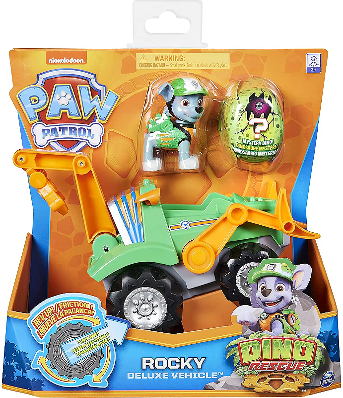 Prepare-se para aventuras emocionantes com o veículo Rocky Deluxe Vehicle na missão Dino Rescue da Patrulha Canina. Com este veículo incrível, as crianças podem recriar cenas emocionantes e resgates corajosos!